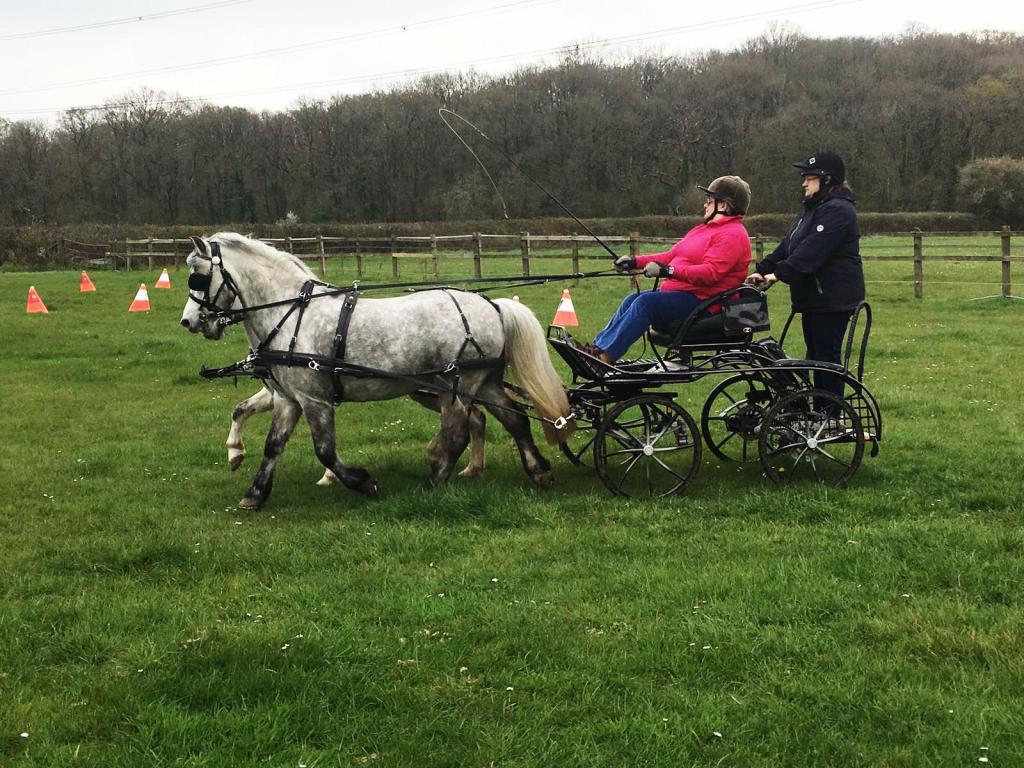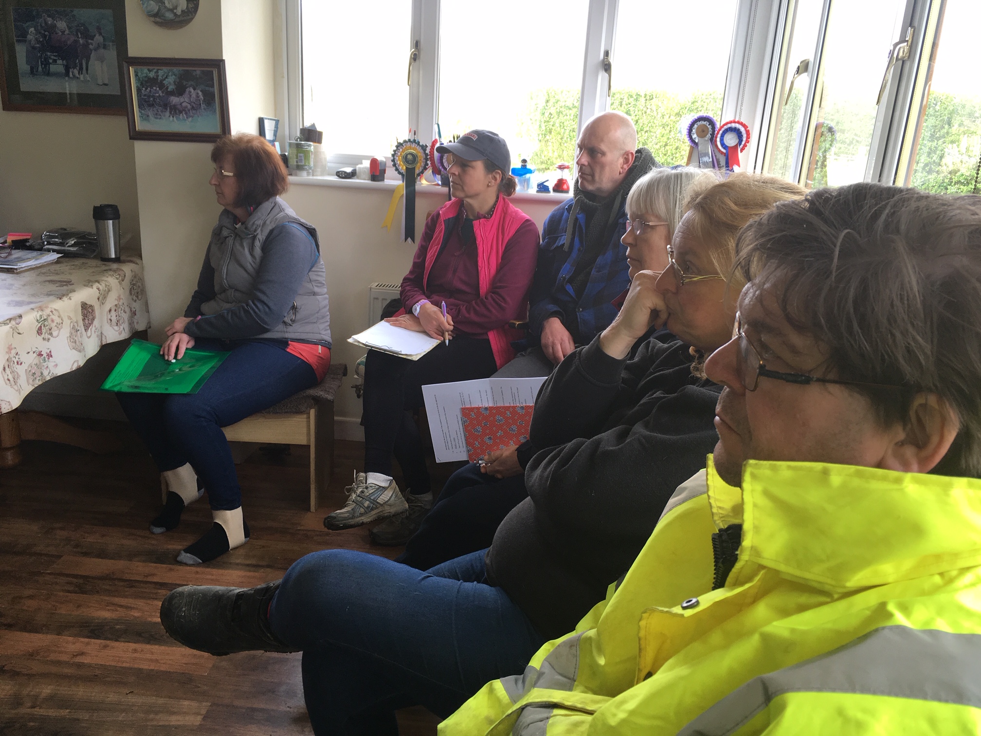 A great day today at Grayswood Carriage Driving Centre for our cones training day (with many thanks to Sue and Roger Page). Starting in the farm kitchen we got to know each other and shared our personal difficulties with cones driving. From remembering the route and understanding the rules to mastering the right driving lines ensuring those pesky balls stay up – it was clear cones has many ways of challending us and our horses.